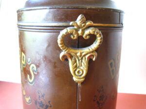Shop tin for toffee / caramel candy ; 11.5 inches tall – 29 cm.